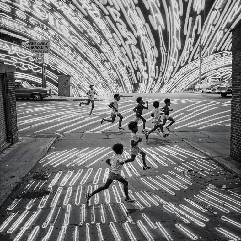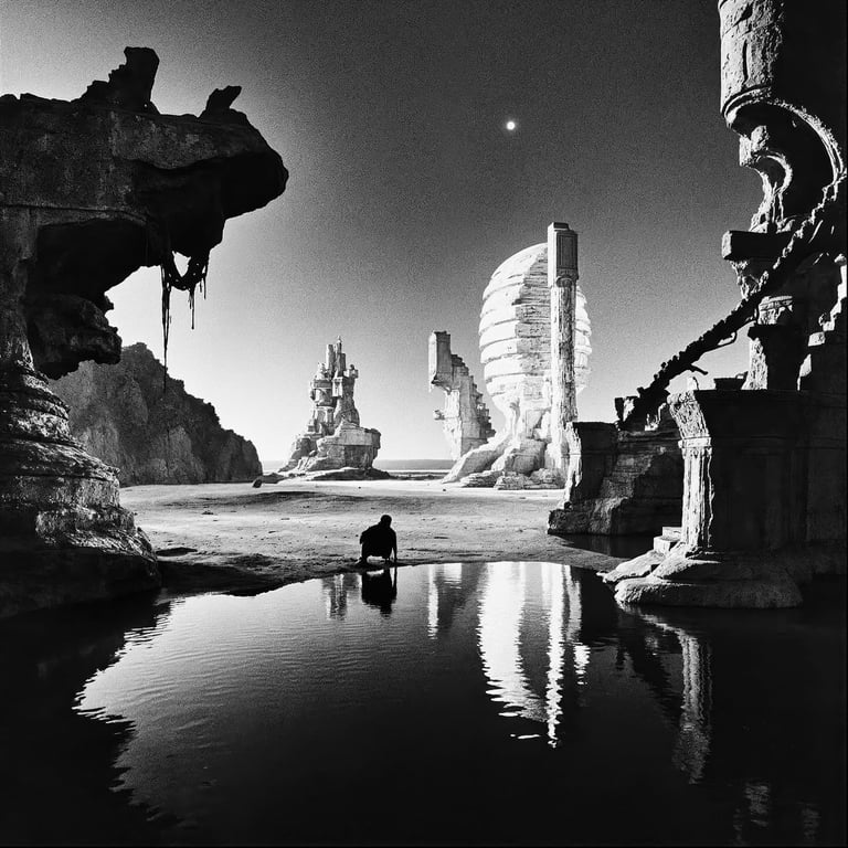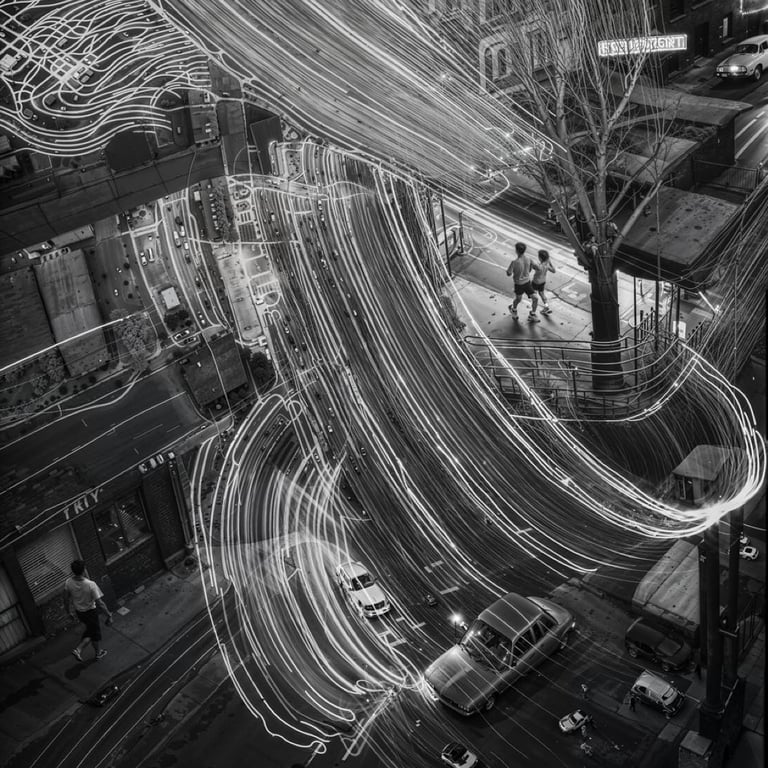 He has released two major collections, On These Streets and AM, both exploring the possibilities of black-and-white post-photography, merging AI with analogue aesthetics. Another series, Seaborn, is a reminiscence of Andrea’s childhood in a coastal town. He has also experimented with AI video through the short series OTS Mixtape and Daily Bread.