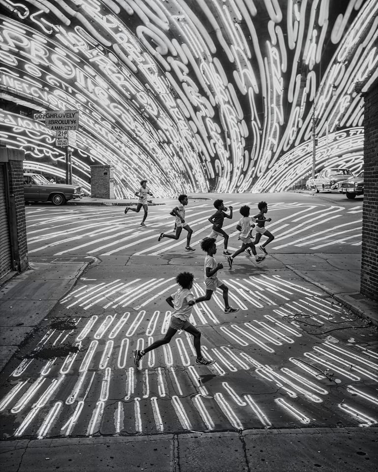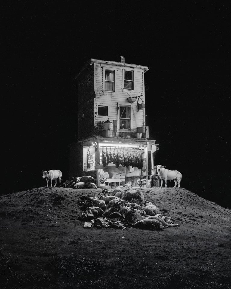 He has released two major collections, On These Streets and AM, both exploring the possibilities of black-and-white post-photography, merging AI with analogue aesthetics. Another series, Seaborn, is a reminiscence of Andrea’s childhood in a coastal town. He has also experimented with AI video through the short series OTS Mixtape and Daily Bread.